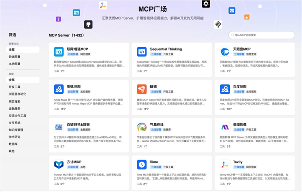 人家专门拉来了美图影像、通达信、天眼查等行业大佬,把它们最强的AI能力,做成了15种以上的优质MCP服务(AI功能插件)。想要什么能力,就即插即用,极其省心。